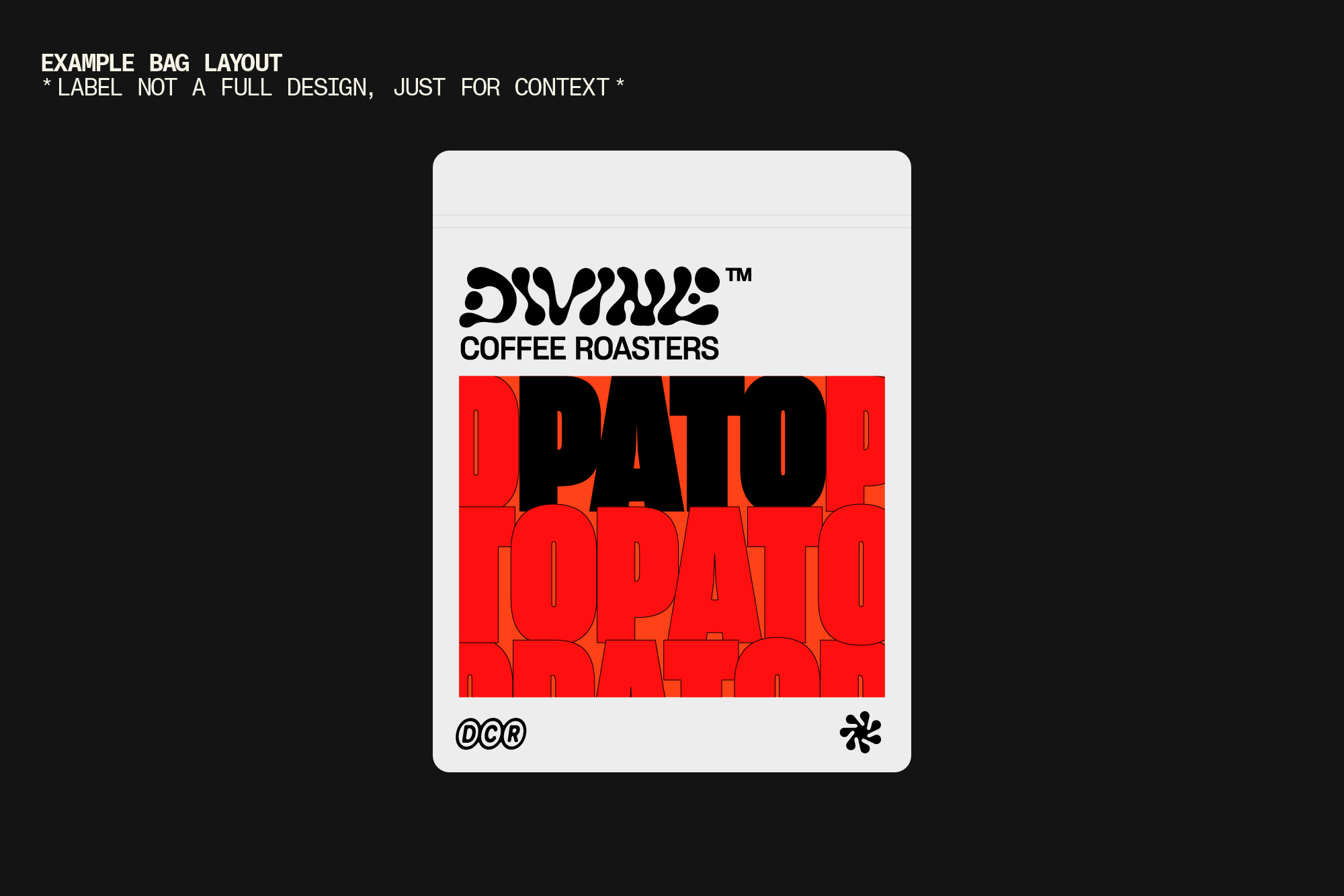 We think this is a cool look but probably not legible enough for all the many sizes and uses the logotype will be used for: web, packaging, signage etc. Therefore we suggest taking this concept and using it to create one of the label artworks where legibility is less of an issue and sizing is fixed.