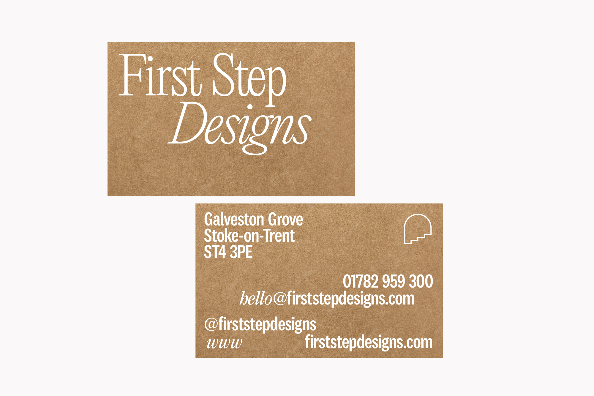 Instead of the sketching concept paired with the FSD icon, we have created a brand mark that hints at steps disappearing into an arch or doorway. This gives a feeling of an 'open door' which is to reference the friendly and contactable customer service and brand ethos. It initially came from investigating the abstract letter shapes of FSD combined in different ways but in the main it references the opening of your front door to your new statement staircase.