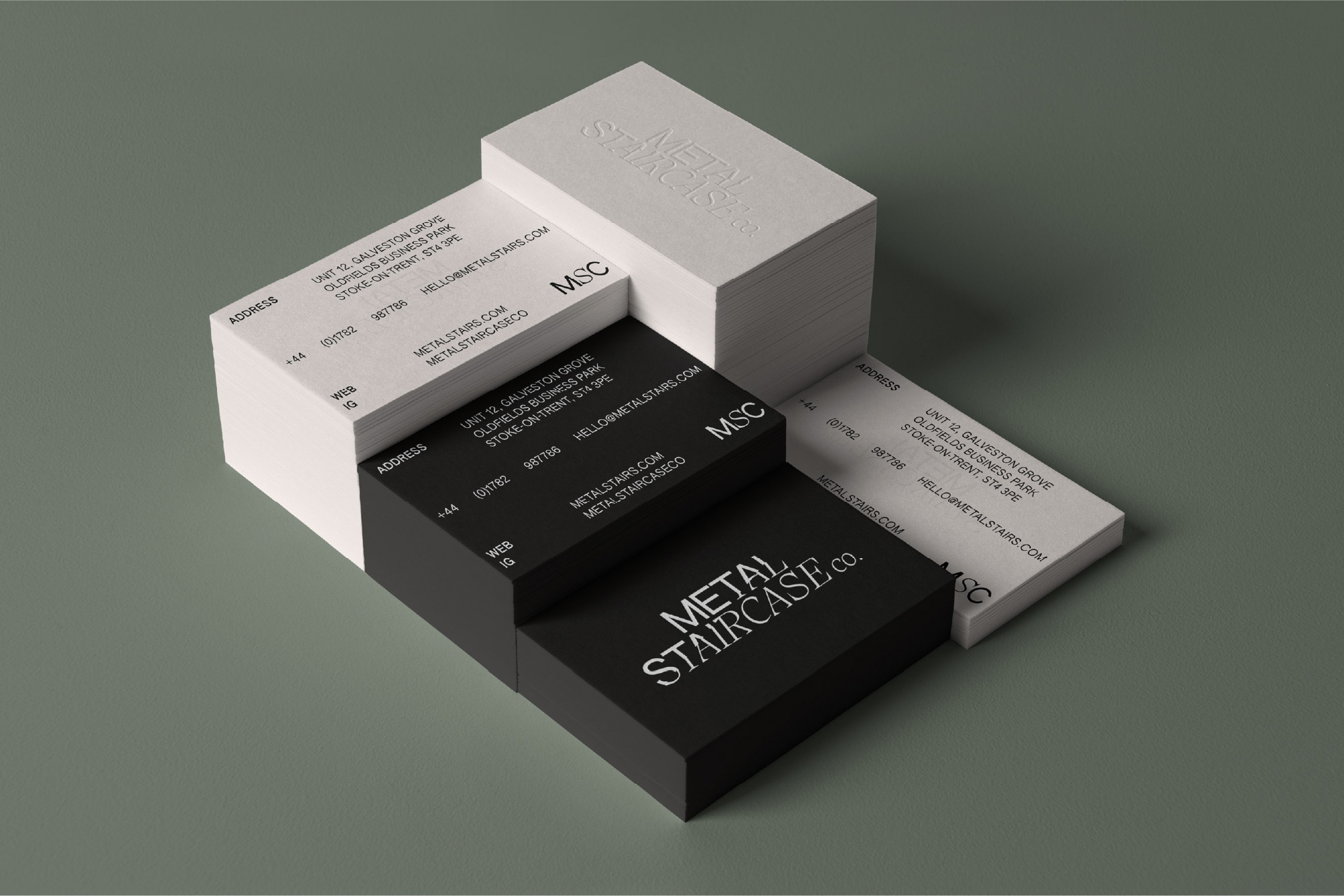 This concept explores the dual elements of the brand in a slightly different way of combining two type styles to create a logotype. The two styles are joined and yet visually separate – in the same way as oak treads combine with a glass balustrade. They join in the upward diagonal direction of a staircase and purposely don't meld together perfectly to show the join and reflection effect.